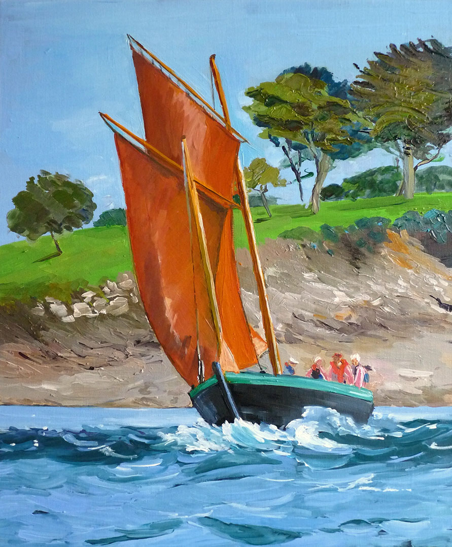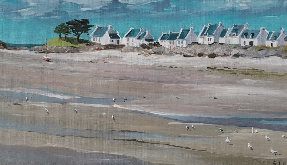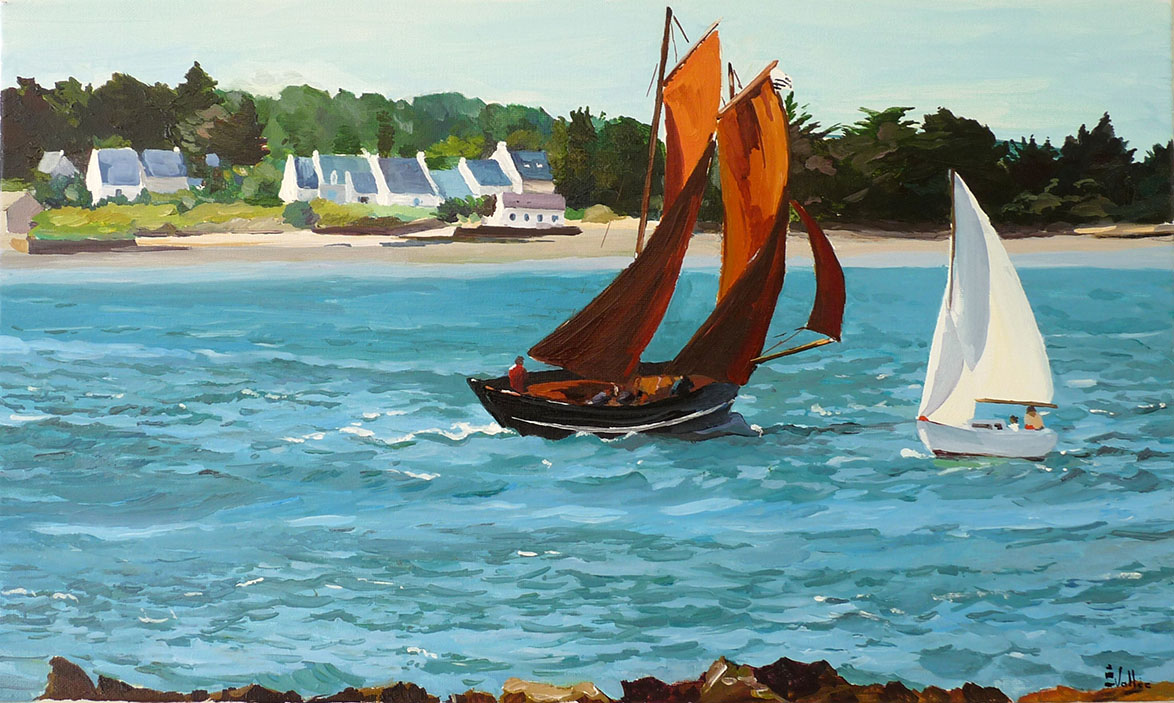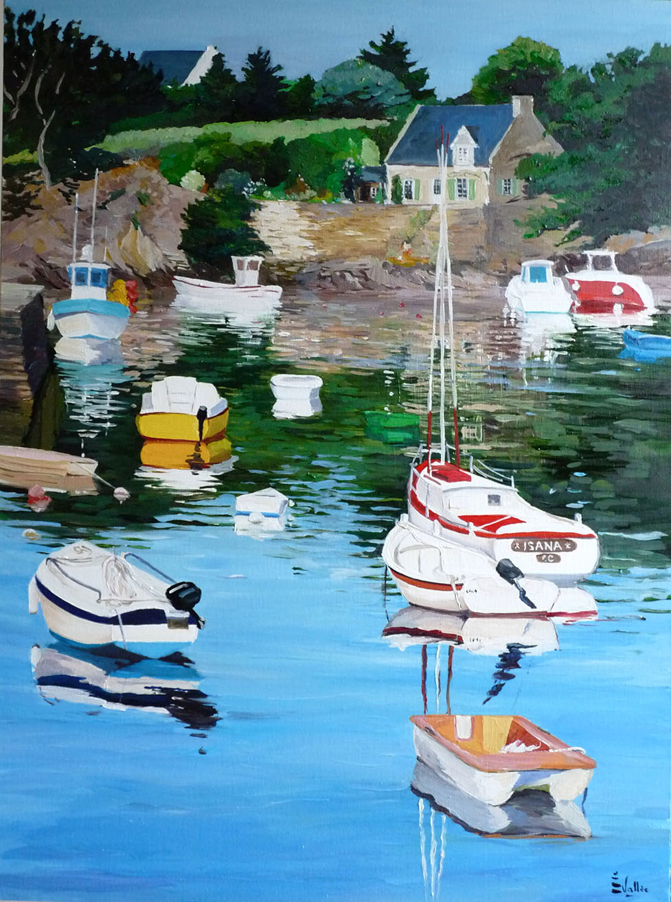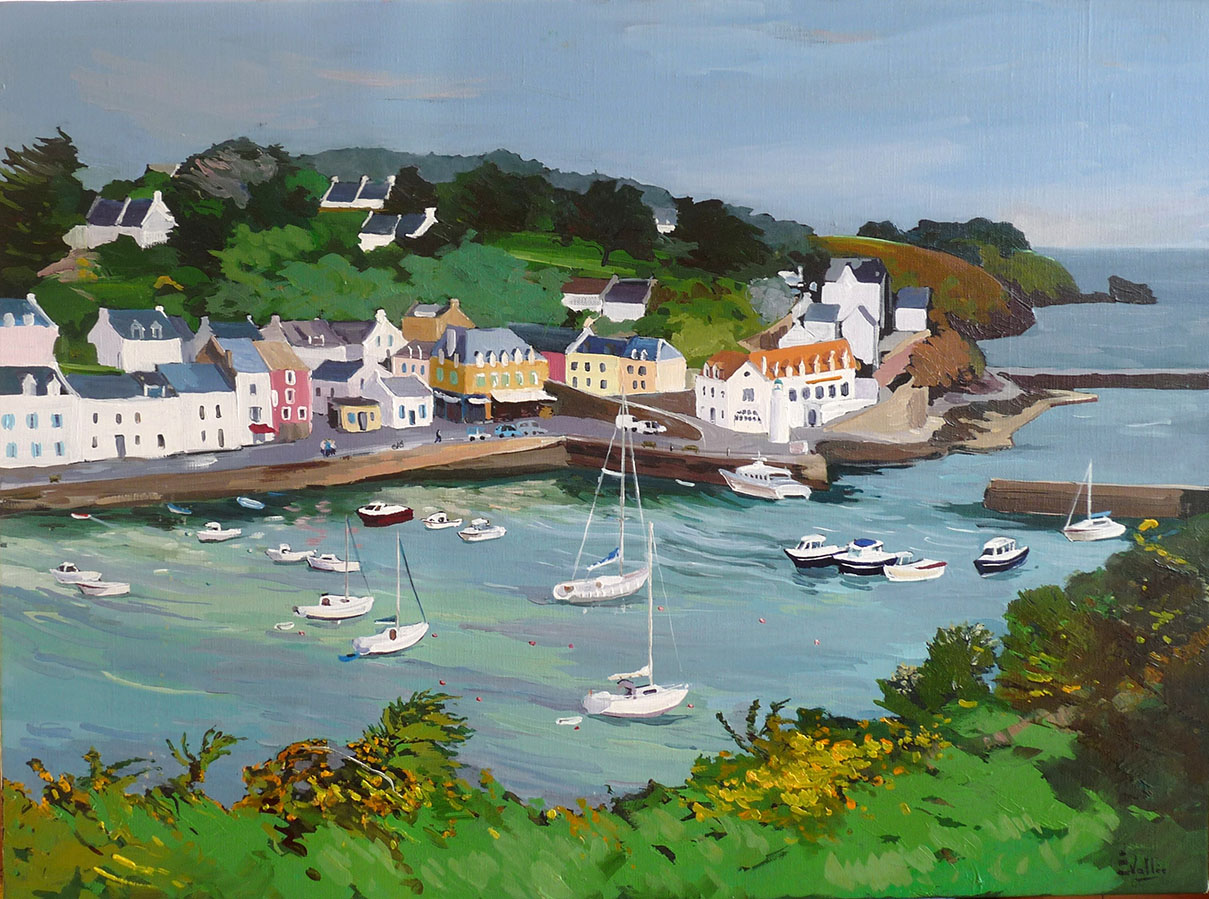 Au fil de ses toiles colorées et lumineuses, elle nous invite à découvrir le littoral breton dans toute sa splendeur : ses côtes sauvages, ses paysages changeants, ses bateaux amarrés et les scènes de vie qui animent ses ports et villages.