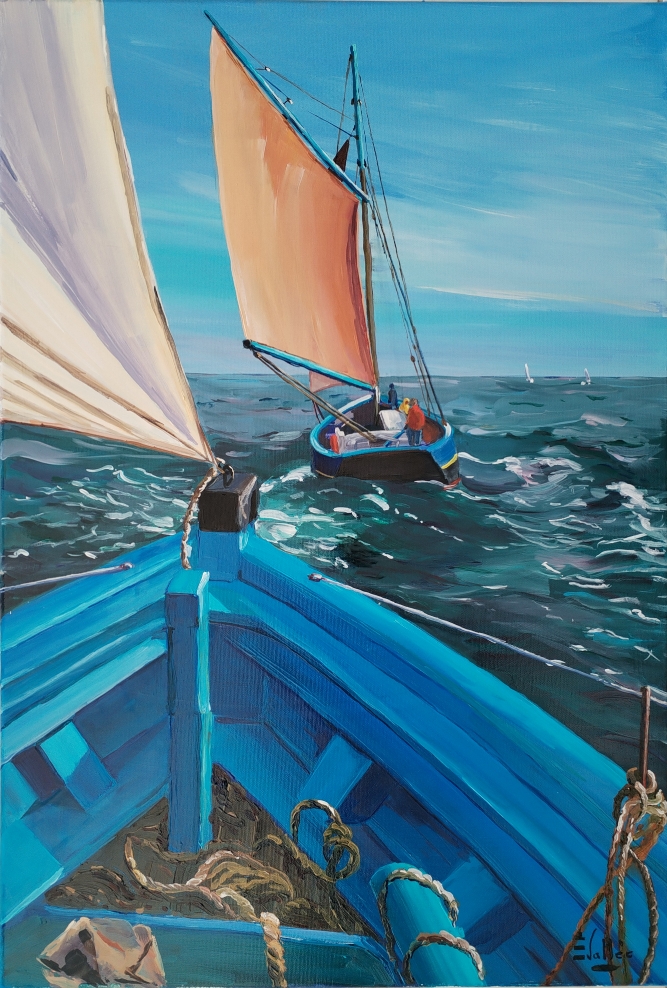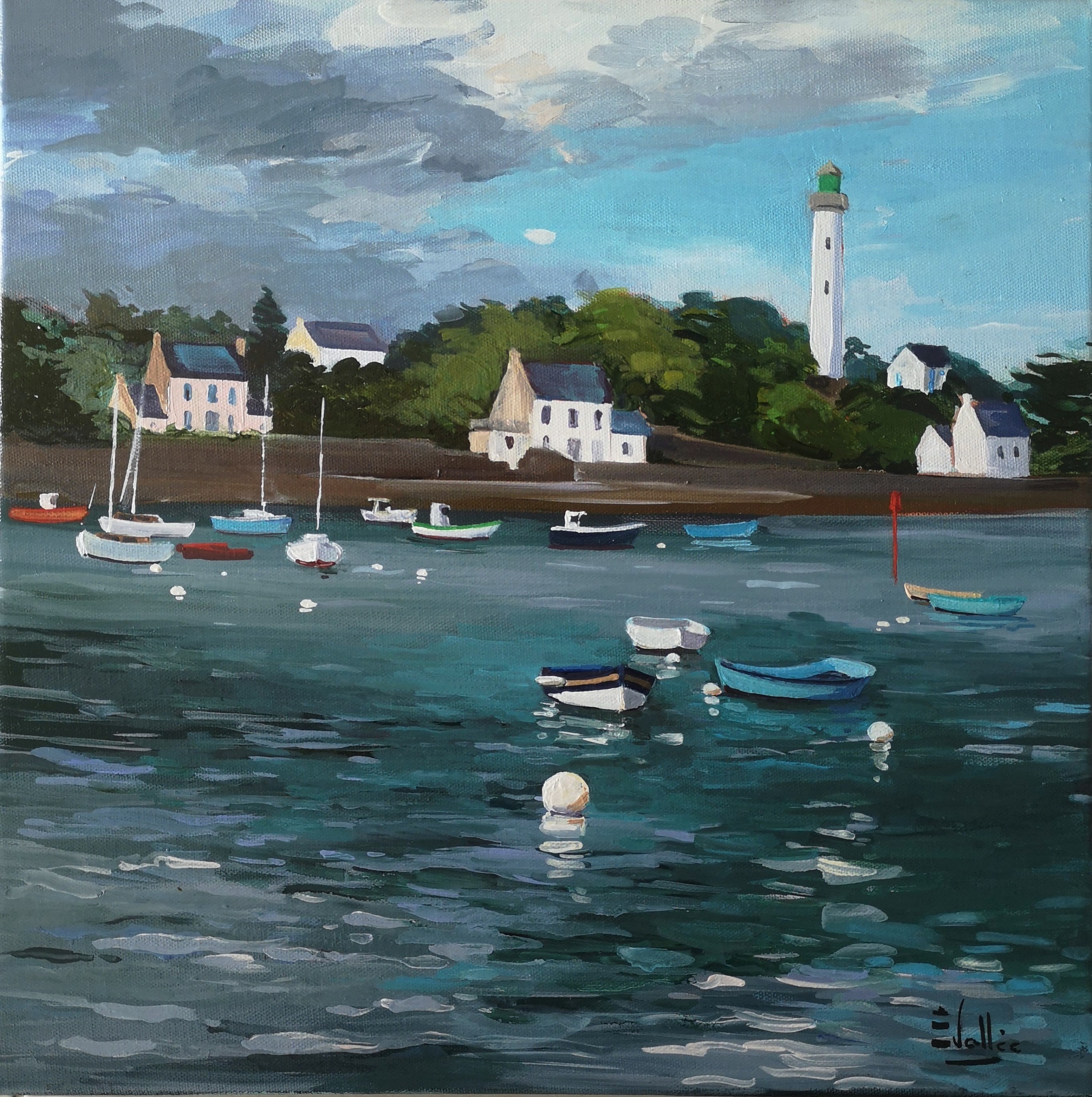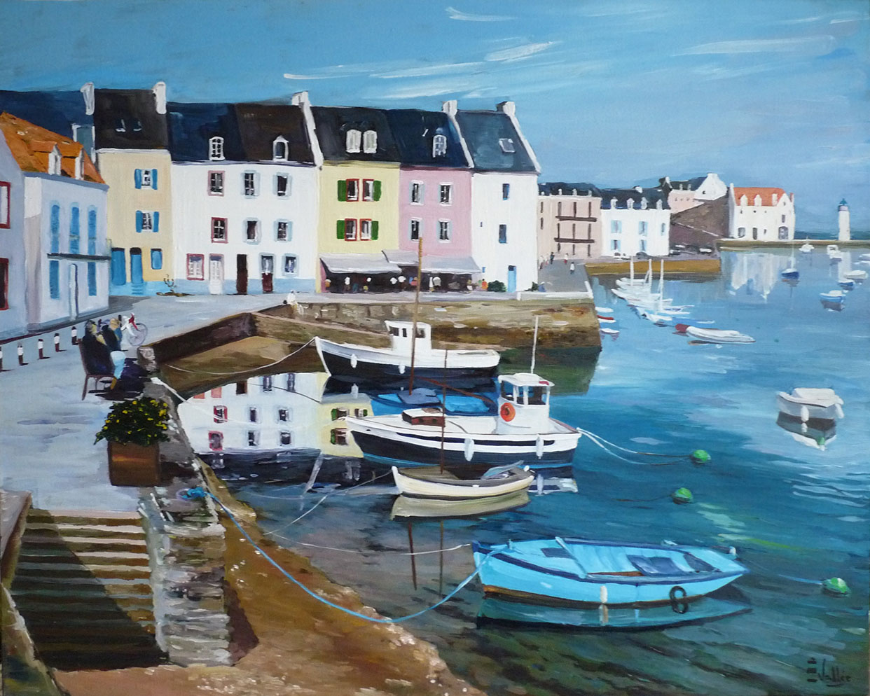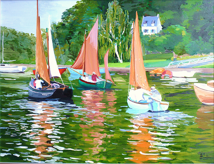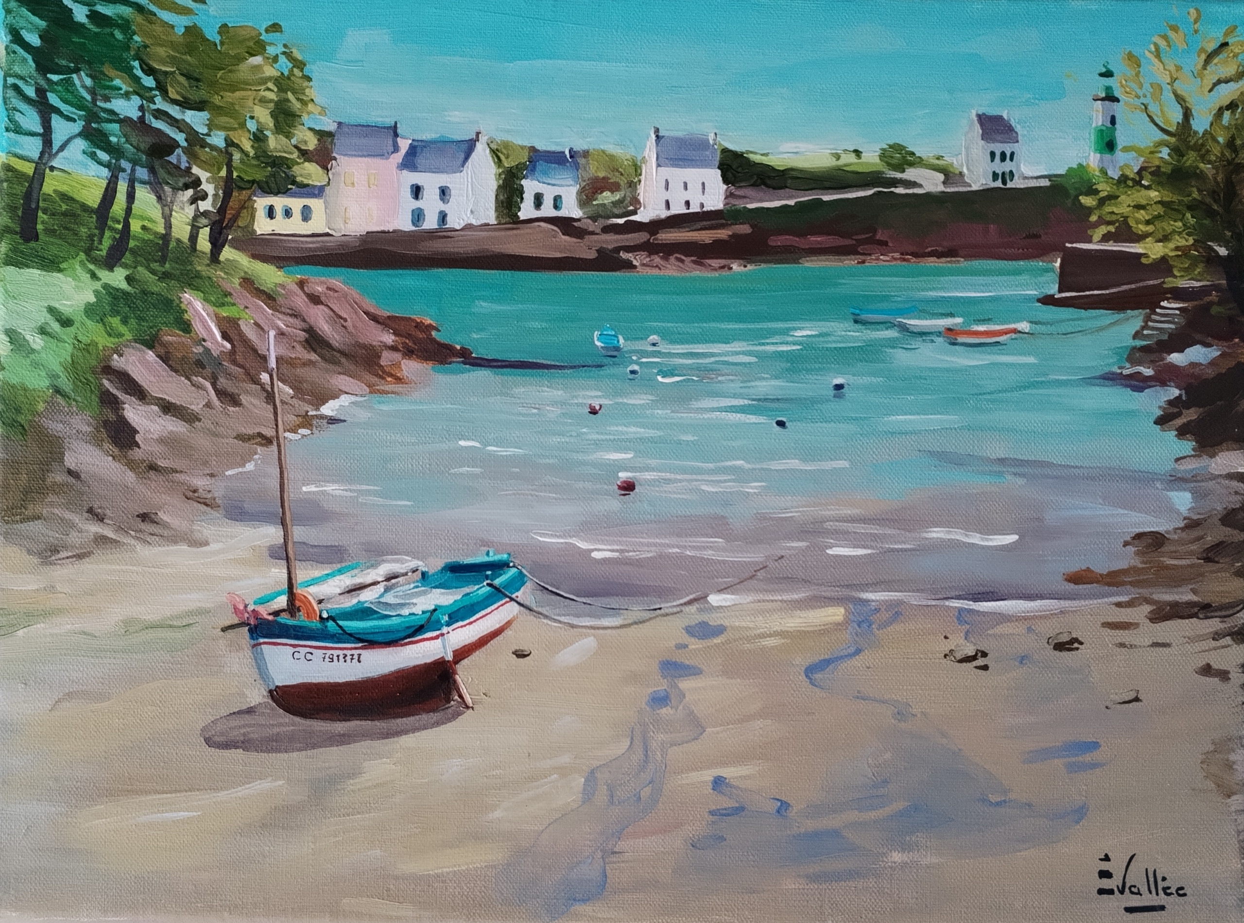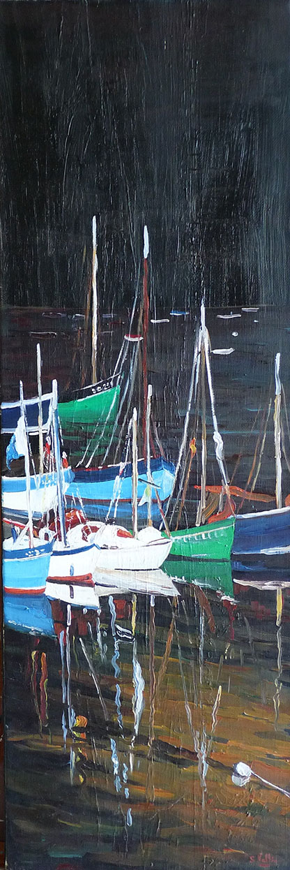 Au fil de ses toiles colorées et lumineuses, elle nous invite à découvrir le littoral breton dans toute sa splendeur : ses côtes sauvages, ses paysages changeants, ses bateaux amarrés et les scènes de vie qui animent ses ports et villages.