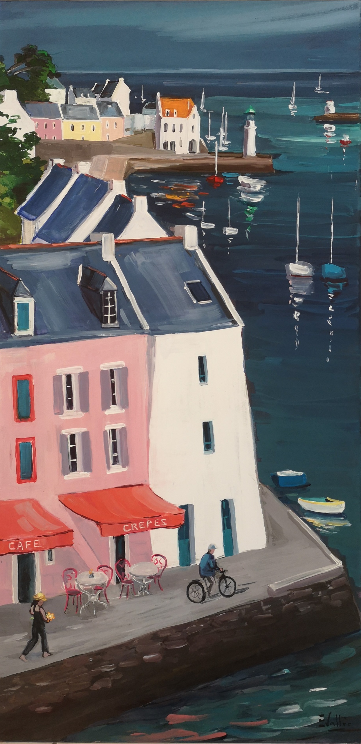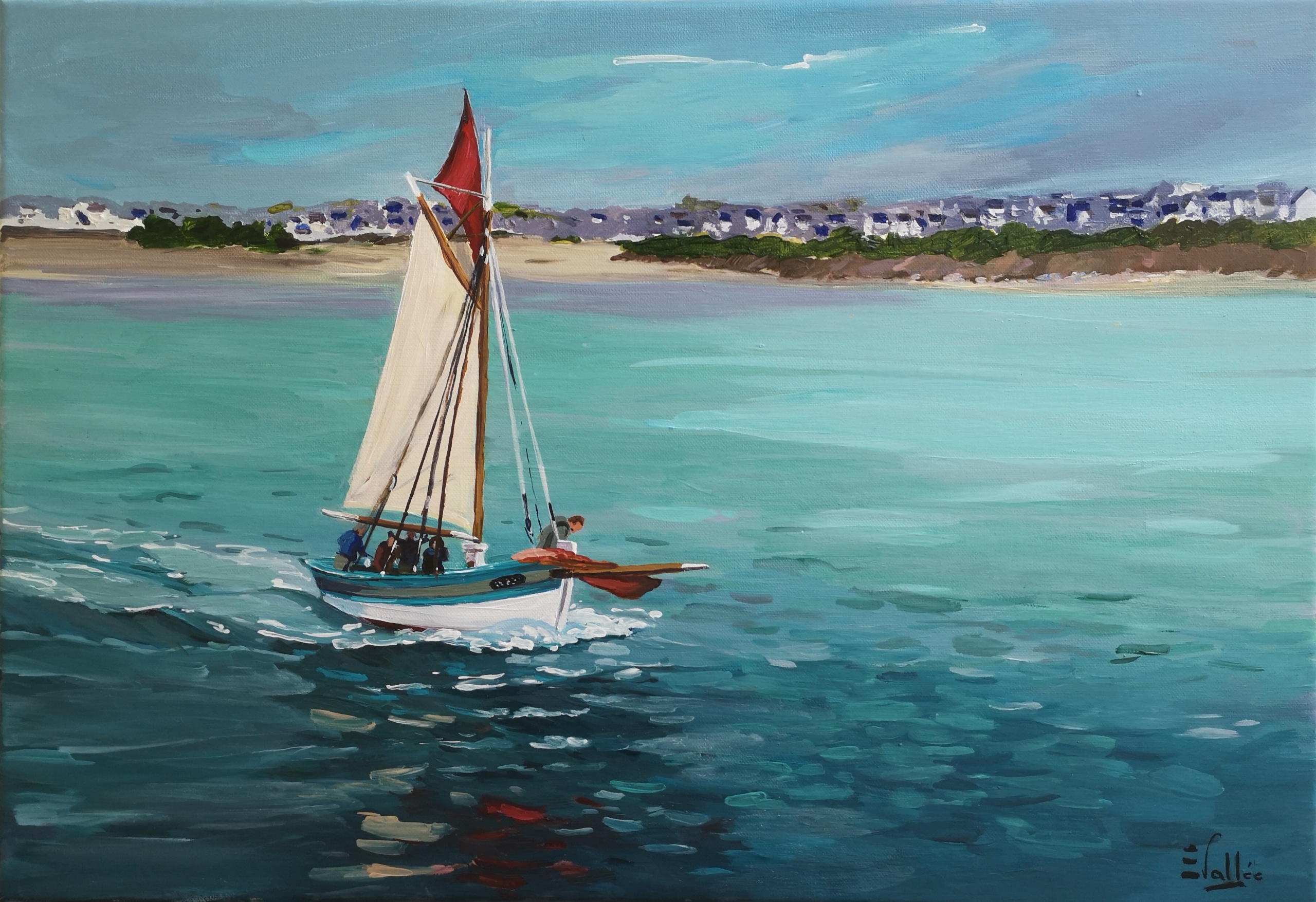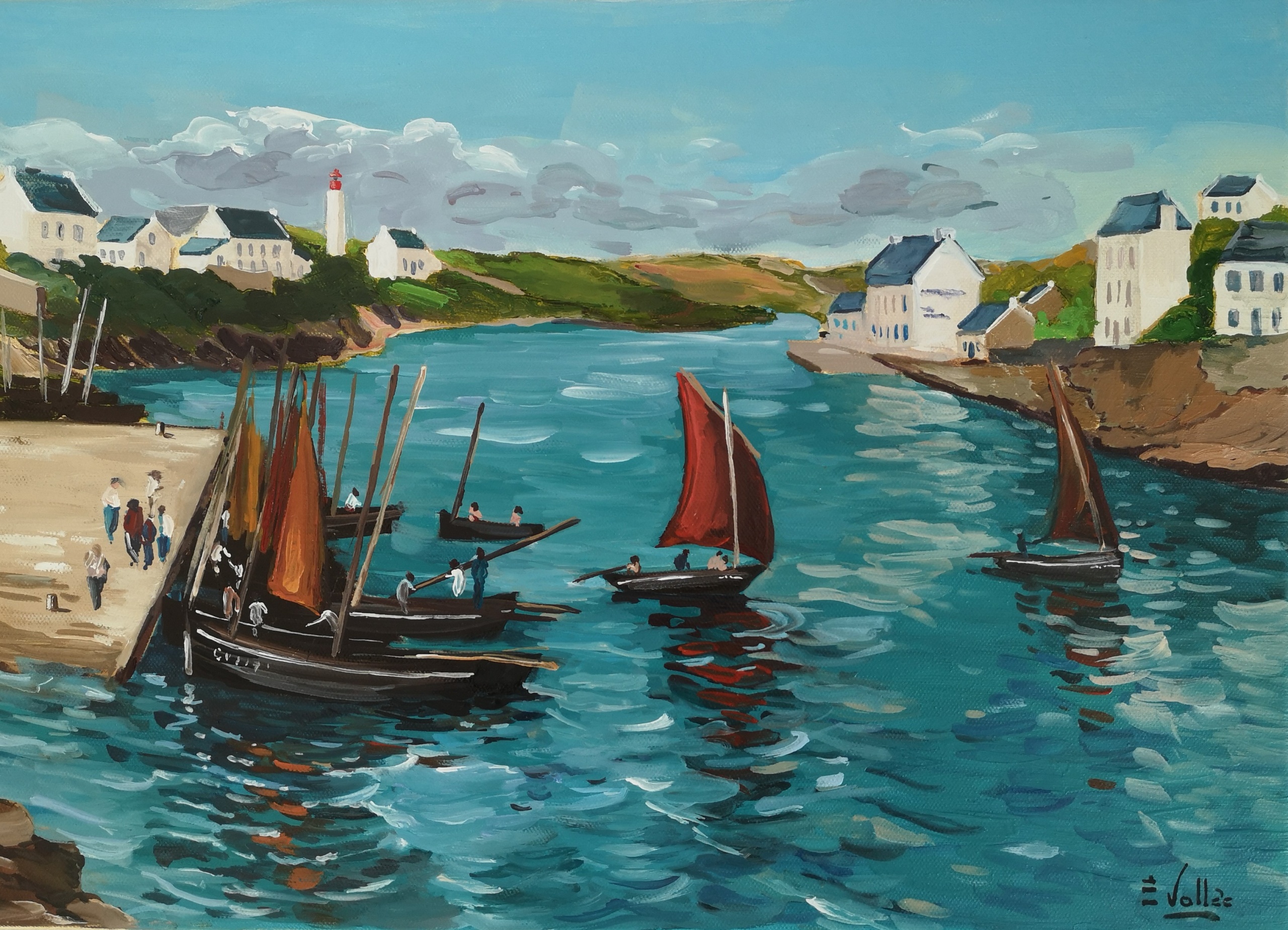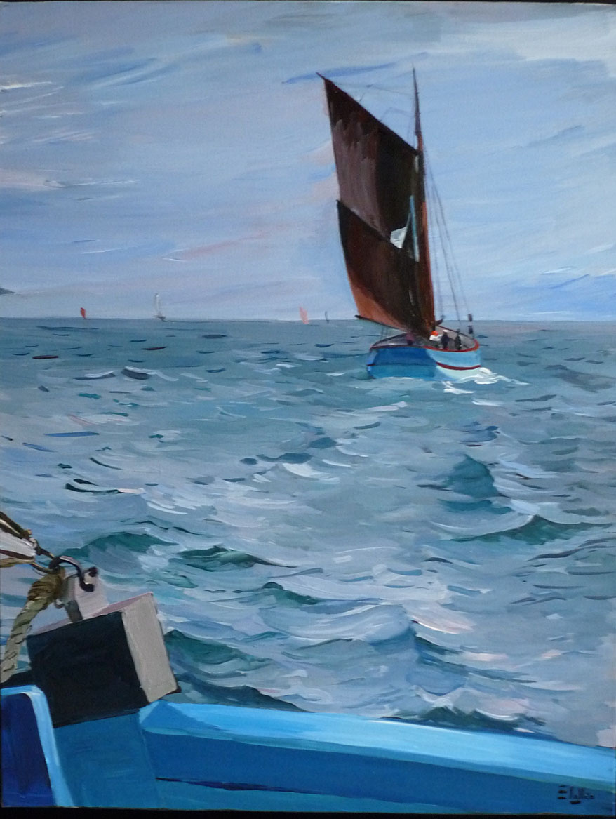 Au fil de ses toiles colorées et lumineuses, elle nous invite à découvrir le littoral breton dans toute sa splendeur : ses côtes sauvages, ses paysages changeants, ses bateaux amarrés et les scènes de vie qui animent ses ports et villages.